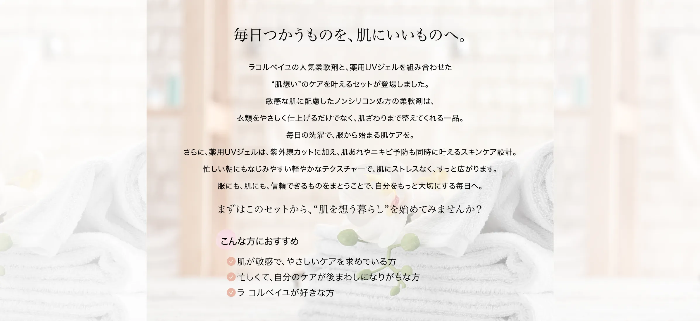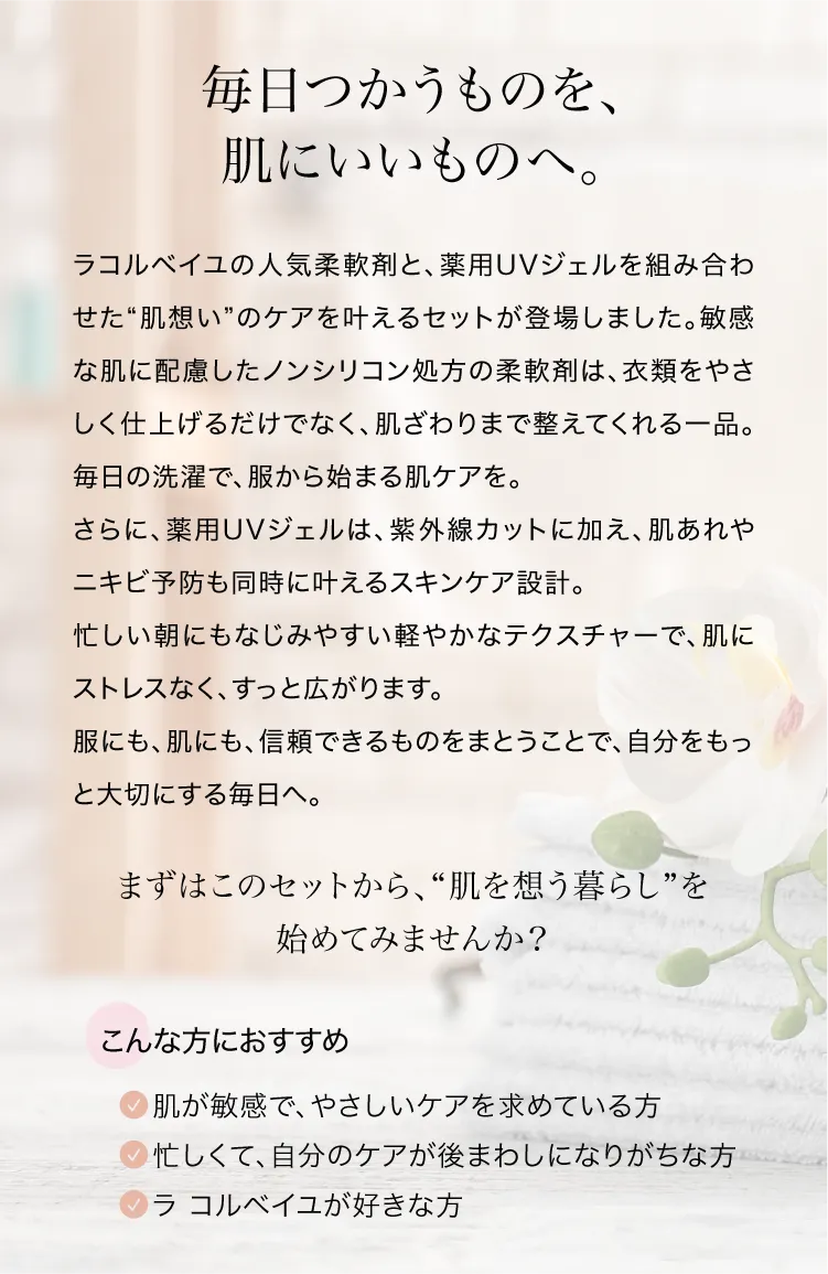 肌想いデイリーケアセット (柔軟剤本体600ml+薬用UVジェル50g:各1)